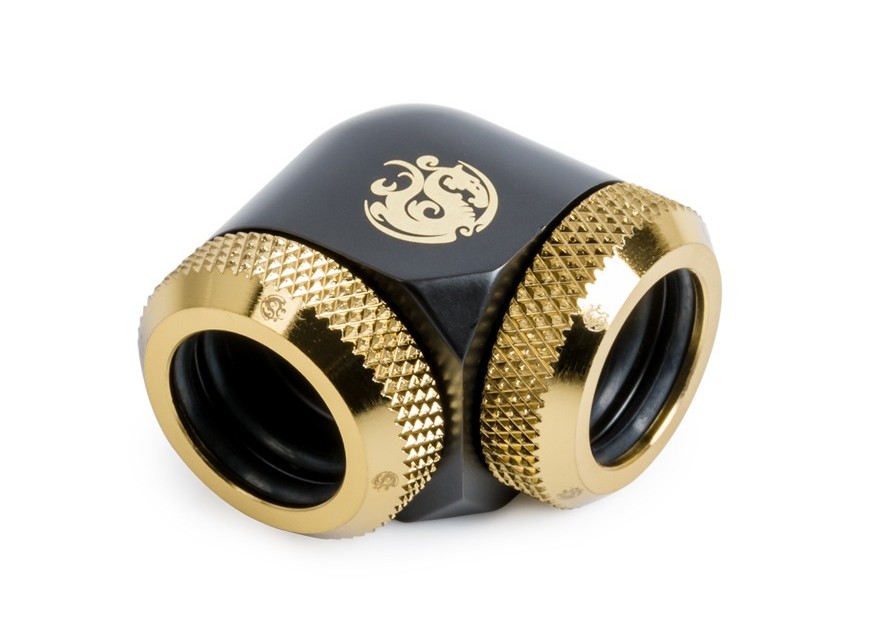 BITSPOWER CARBON BLACK/TRUE BRASS ENHANCE 90-DEGREE DUAL MULTI-LINK ADAPTER FOR OD 14MM