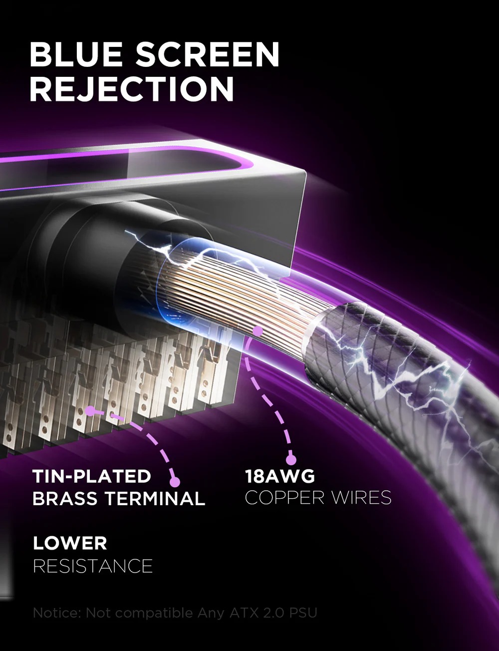 HYDRUS ARGB PSU EXTENSION CABLE 24 PIN 30CM - BLACK